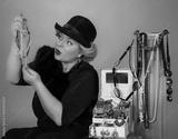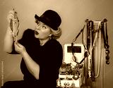 Young woman with her accessories collection