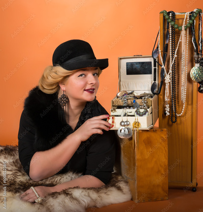 Young woman with her accessories collection