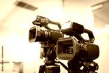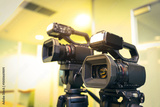 Digital movie cameras or video camera for journalist interview broadcasting reporter news or press conference speaker or public speaking or report record and content creator live media.