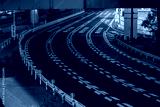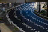 An empty street at the urban city street in Yokohama in autumn telephoto shot