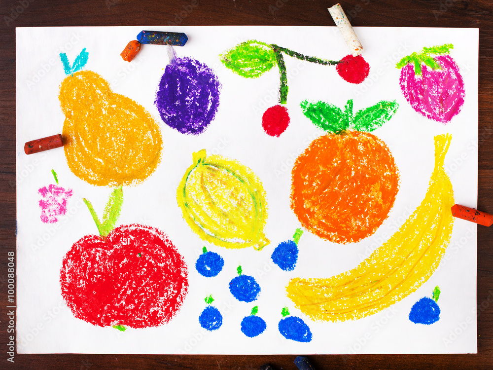 Color drawing: miscellaneous types of fruits