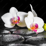 beautiful spa still life of blooming white and red orchid flower