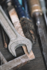 old tools in closeup ,selective focus