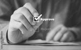 Businessman use pen to tick correct sign mark in checkbox with approve wording for quality document control checklist and business approval project concept.