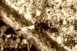 CloseUp of a Striking Dragonfly Resting on a Textured Stone Surface Under Natural Light