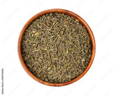 Dry thyme isolated, dried marjoram, oregano pile, ground crushed thyme seasoning, thyme leaves