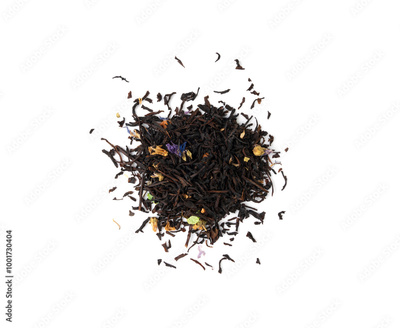 Flavored Black Tea Leaves Isolated, High Quality Black Tea Pile with Fruits and Flowers, Organic Indian Drink