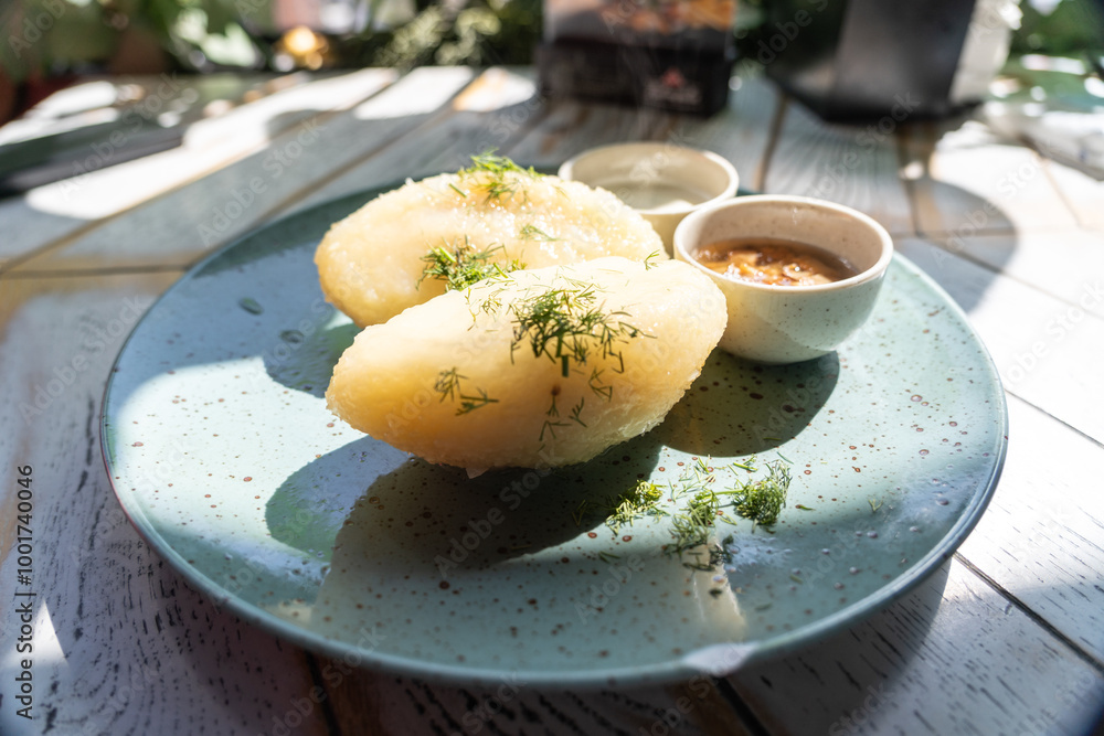 Lithuanian potato dumplings, cepelinai pancakes or kolduny, meat stuffed draniki, traditional didzkukuliai