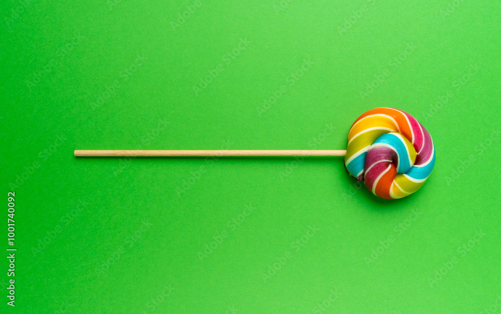 Color lollipop, spiral candy on stick, colorful striped lollypop, round fruit caramel, circle lollipop