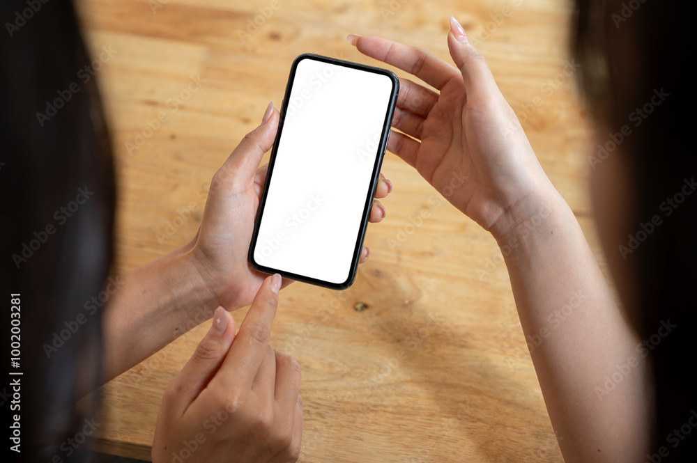 A close-up of two women discussing something on a smartphone while sitting indoors.