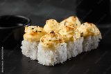 Gourmet Baked Sushi Roll with Cheese Mousse on Top – Elegant Food Photography