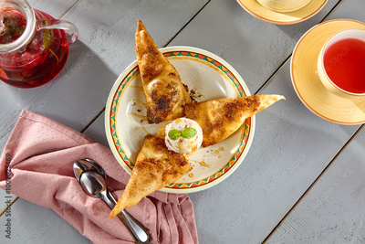 Spiced Cinnamon Puff Pastries with Ice Cream - Dessert Photography