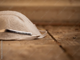 Protective dust mask on distressed wooden floor