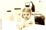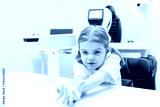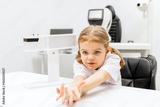 A girl participates in an engaging vision enhancement therapy using cutting-edge equipment. This laser treatment aids in restoring and developing visual skills.