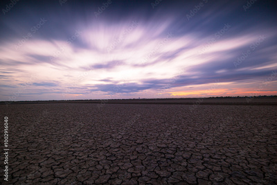 Arid landscape,Dry barren land with cloudy polluted sky, climate change and desertification concept