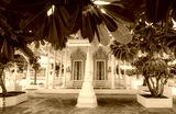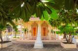 A wooden Buddhist temple in Thailand,Wat Laem Suwannaram, an ancient temple in Samut Sakhon Province, an old church over 300 years old, built entirely of wood by Chinese craftsmen in the past.