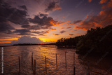 Coast and mangrove forest in the evening in Thailand,Tropical mangrove forest under sunlight with cloudy blue sky in phang nga bay, Thailand.