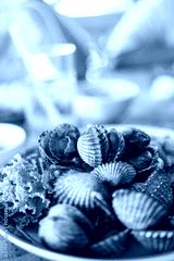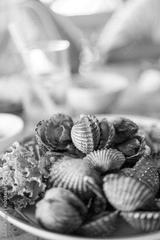 Fresh blood cockle. Boiled cockles are a popular seafood dish eaten in Thailand. Thai style seafood