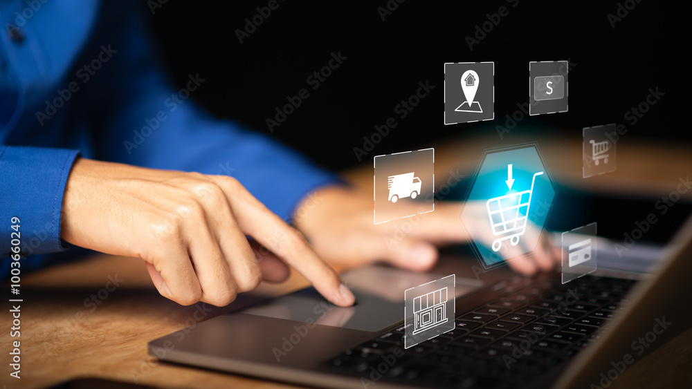 Online shopping or e-shopping concept ,Consumer society,Shopping service on online web and offers home delivery ,online business growth ,making promotion 24 customer service to meet customer needs