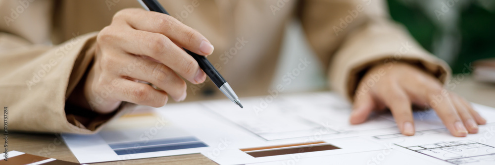 Interior architecture or engineer working on blueprint and planning projects