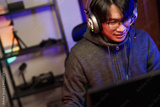 Close up hand playing online game with keyboard and pc.