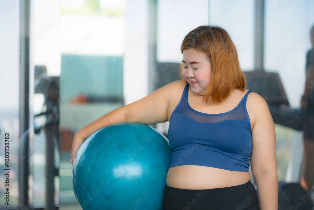Overweight obese woman exercises on mat fitness Dieting and healthy lifestyle for burning fat