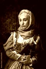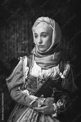 Medieval woman holds a Catholic cross.