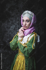 Medieval woman holding hands in prayer