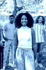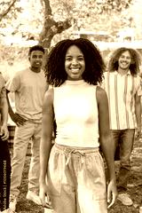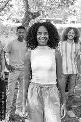 Young woman smiling with friends at a party in the park