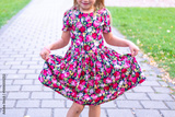 sweet 5-year-old girl in lfancy dress curtsies gracefully, embodying innocence and elegance little princess, full happiness and innocence