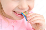 cheerful small child, blonde girl 4 years old enjoys gelatinous sweets, colorful rainbow sugar marmalade, happy childhood, sweet life, unhealthy food, halal food
