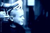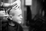 Young man is using Hairdresser making haircut to young man at beauty parlour. Fashion male model behind the scene.