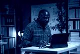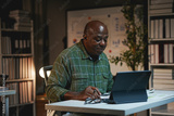 Focused businessman is working late in the office, using a digital tablet to analyze financial data and review reports