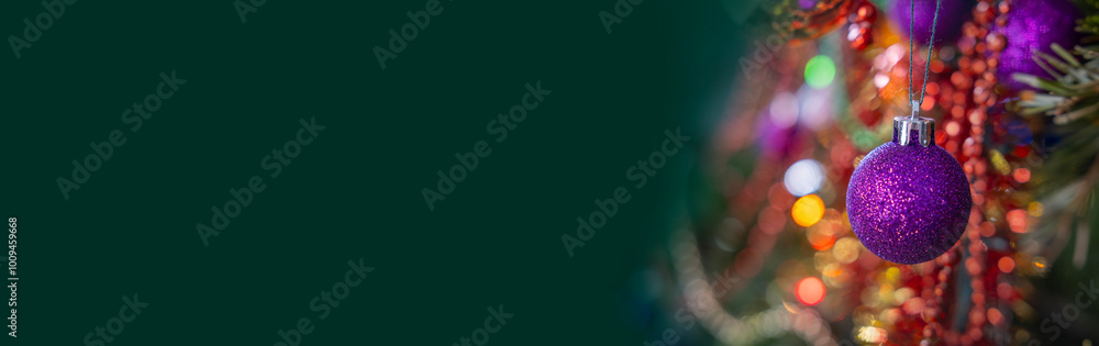 Christmas bauble Hanging On Branches With Glittering, Christmas Tree With Ornaments, Abstract blur transition background, Bokeh effect with Christmas garlands
