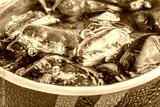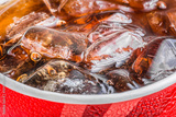 Cola in glass with ice on white background, Close up