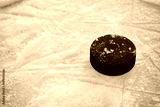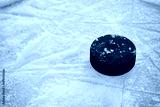 Hockey puck on ice hockey rink
