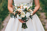 bride holding a bouquet of flowers in a rustic style, wedding bouquet