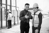 worker and businessman meeting and working on tablet in the factory