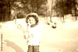 Girl sculpts snowballs.