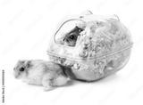 A curious hamster peeks out from its cozy habitat filled with bedding materials