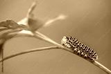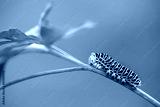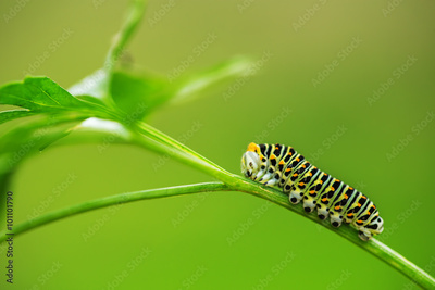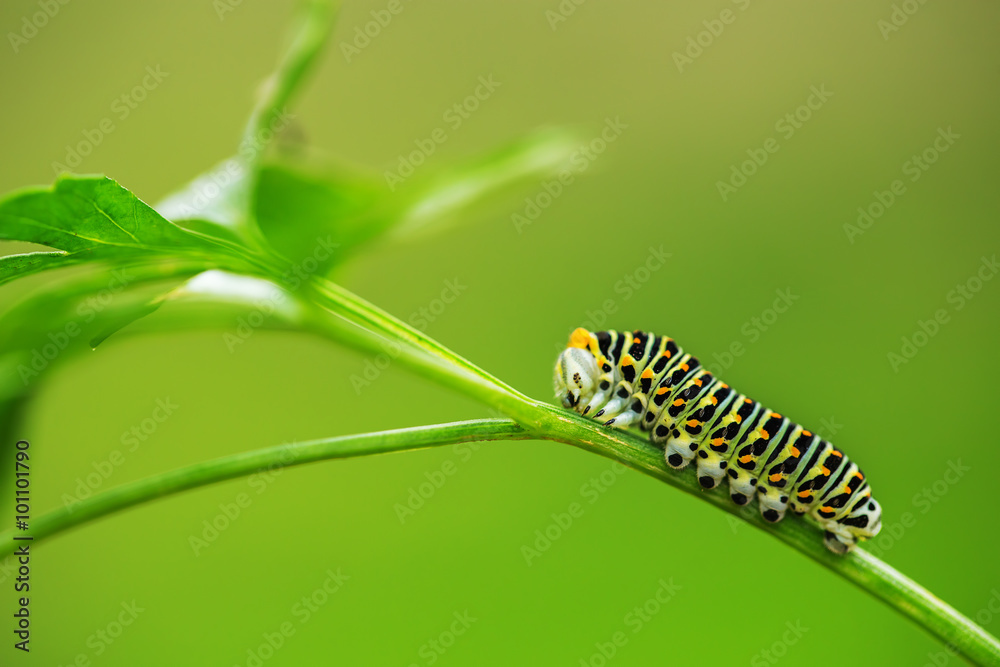 Beautiful green caterpillar creeps on a green grass
