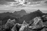 Layer of mountains and mist at sunset time, Landscape at Doi Luang Chiang Dao, High mountain in Chiang Mai Province, Thailand. Black & White