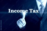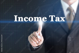 Businessman pressing a Income Tax concept button. Can be used in advertising.