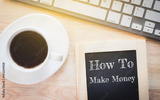 Concept How to make money message on wood boards. A keyboard and a glass coffee table.Vintage tone.