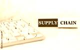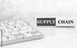 White label with keyboard on the table and text Supply Chain. concept with social media diagram