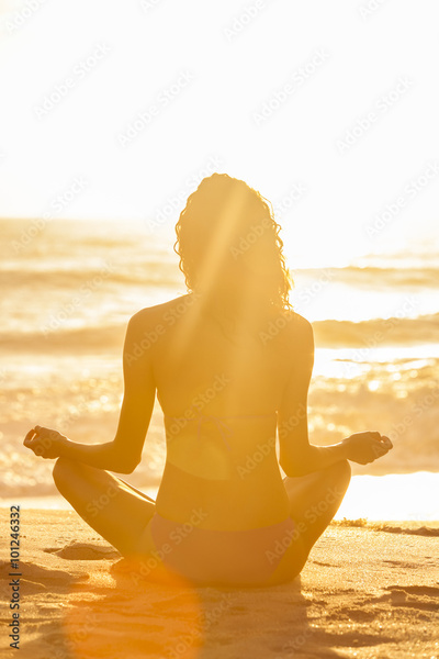 Woman Girl Sitting Sunrise Sunset Bikini Beach
