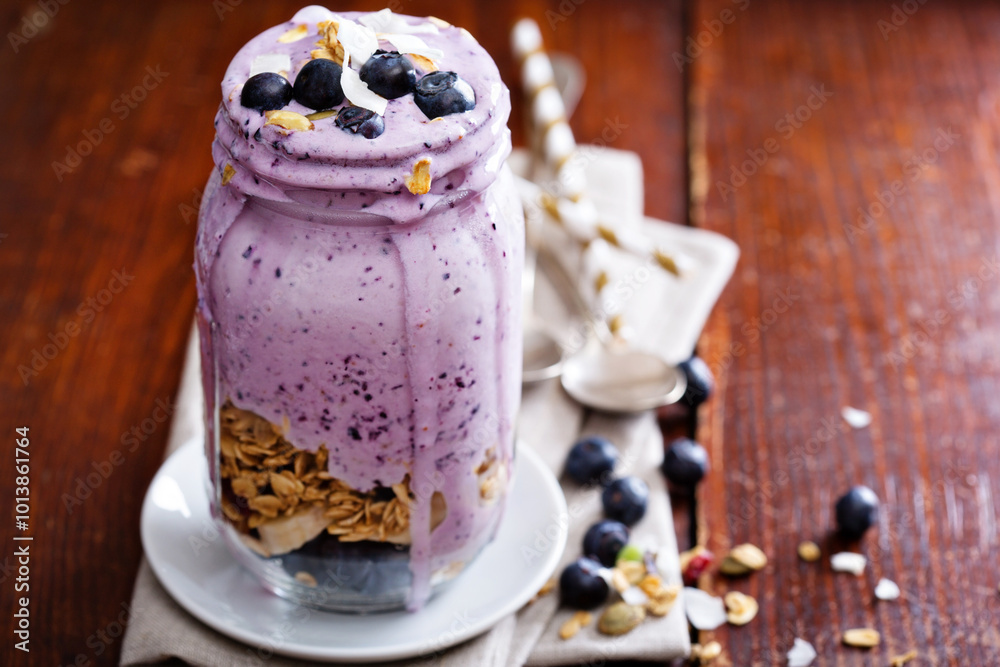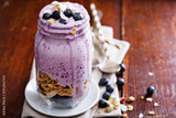 Blueberry smoothie with fruits and granola