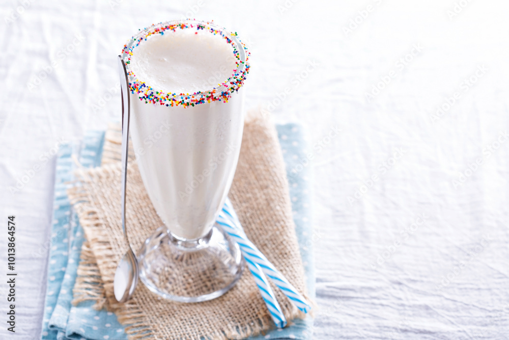 White chocolate milkshake in tall glass