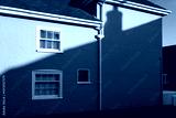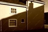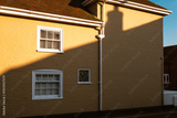 Evening shadow of a nearby house seen cast on a mustard coloured seaside home in southwold, Suffolk.