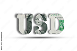 Isolation with clipping path of USD sign on dollar banknote on white background for dollar is the main forex currency exchange and transfer in the world concept.